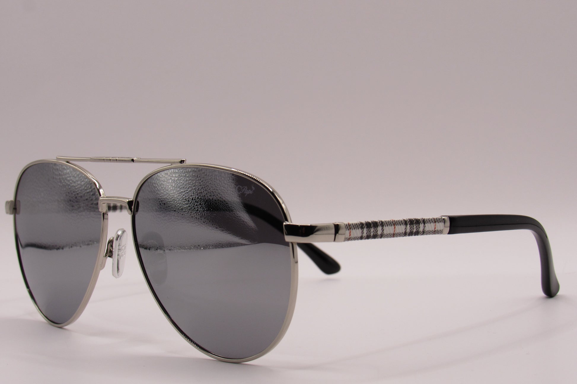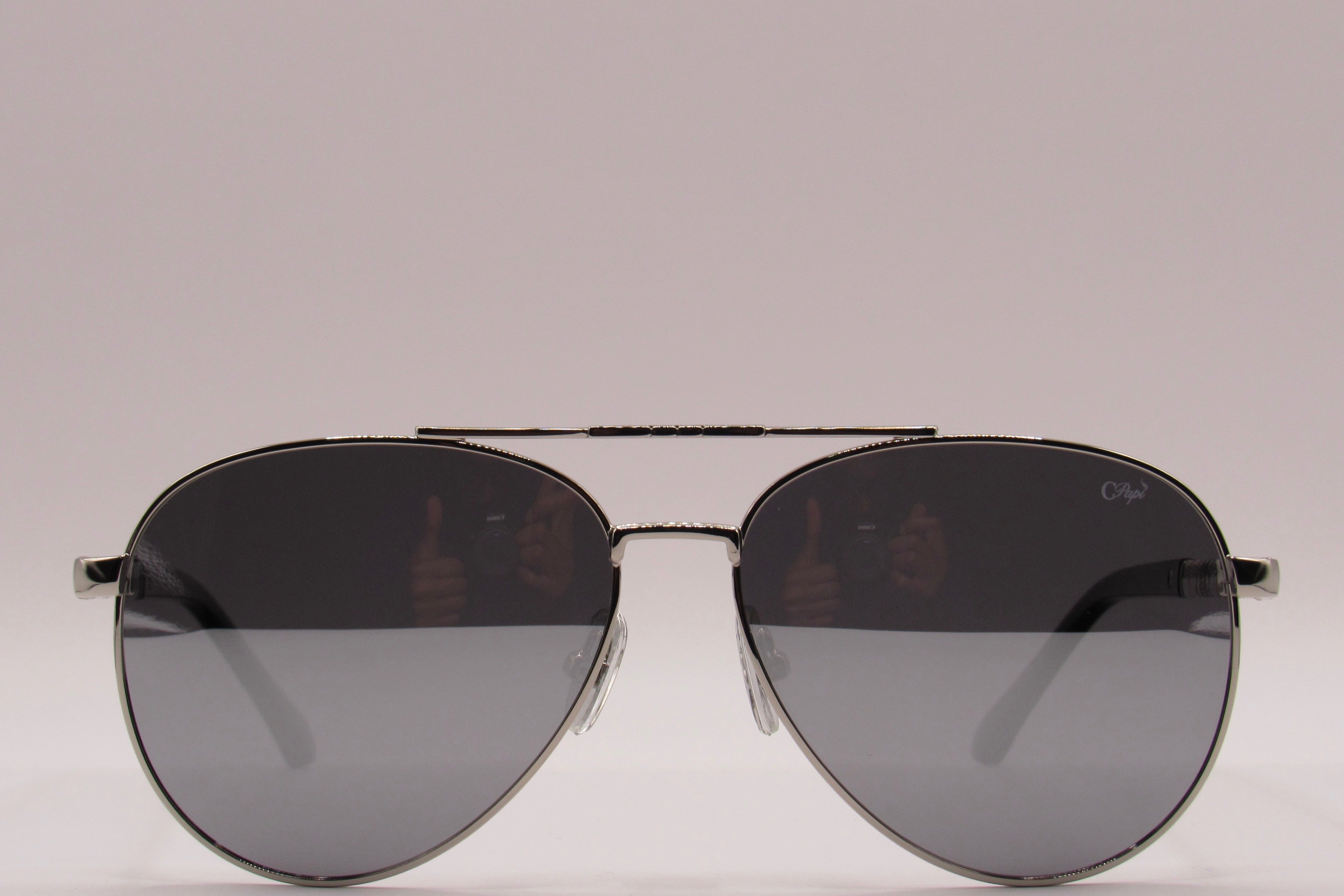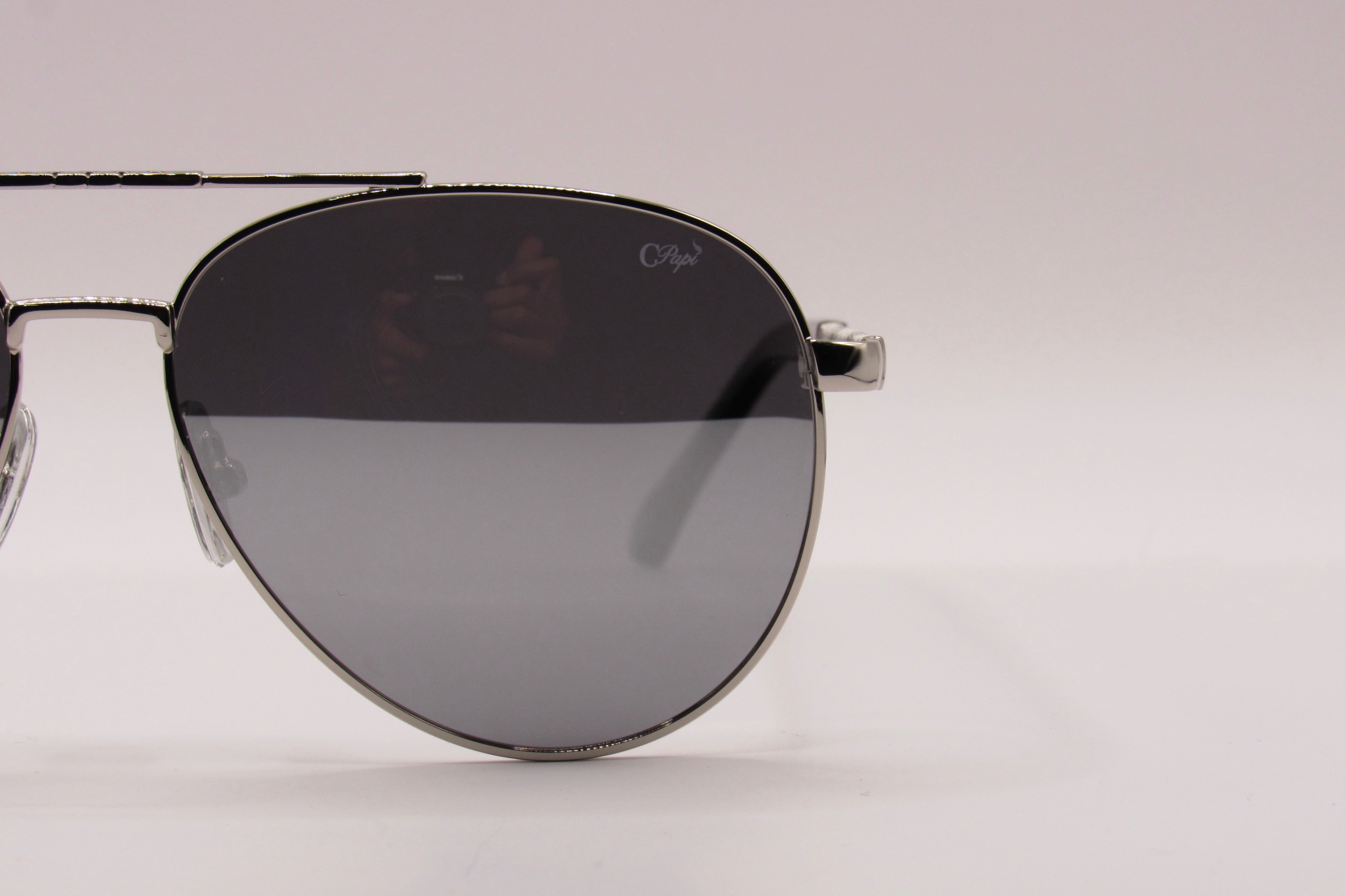 The C Papí: Aviator Edition redefines a classic silhouette through precision and polish. Designed with a sculpted silver frame and finished in premium acetate detailing, this edition balances strength with fluid refinement.