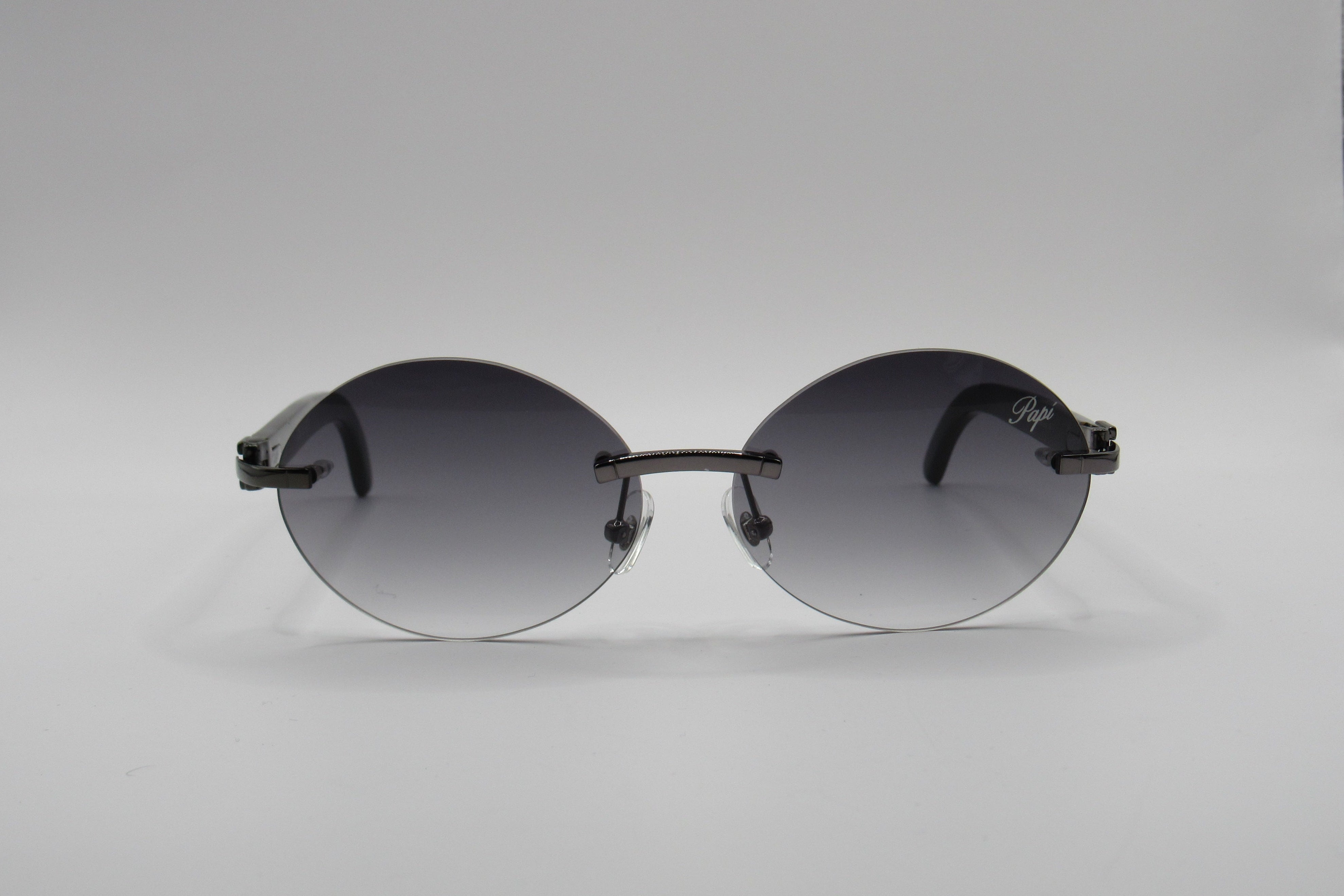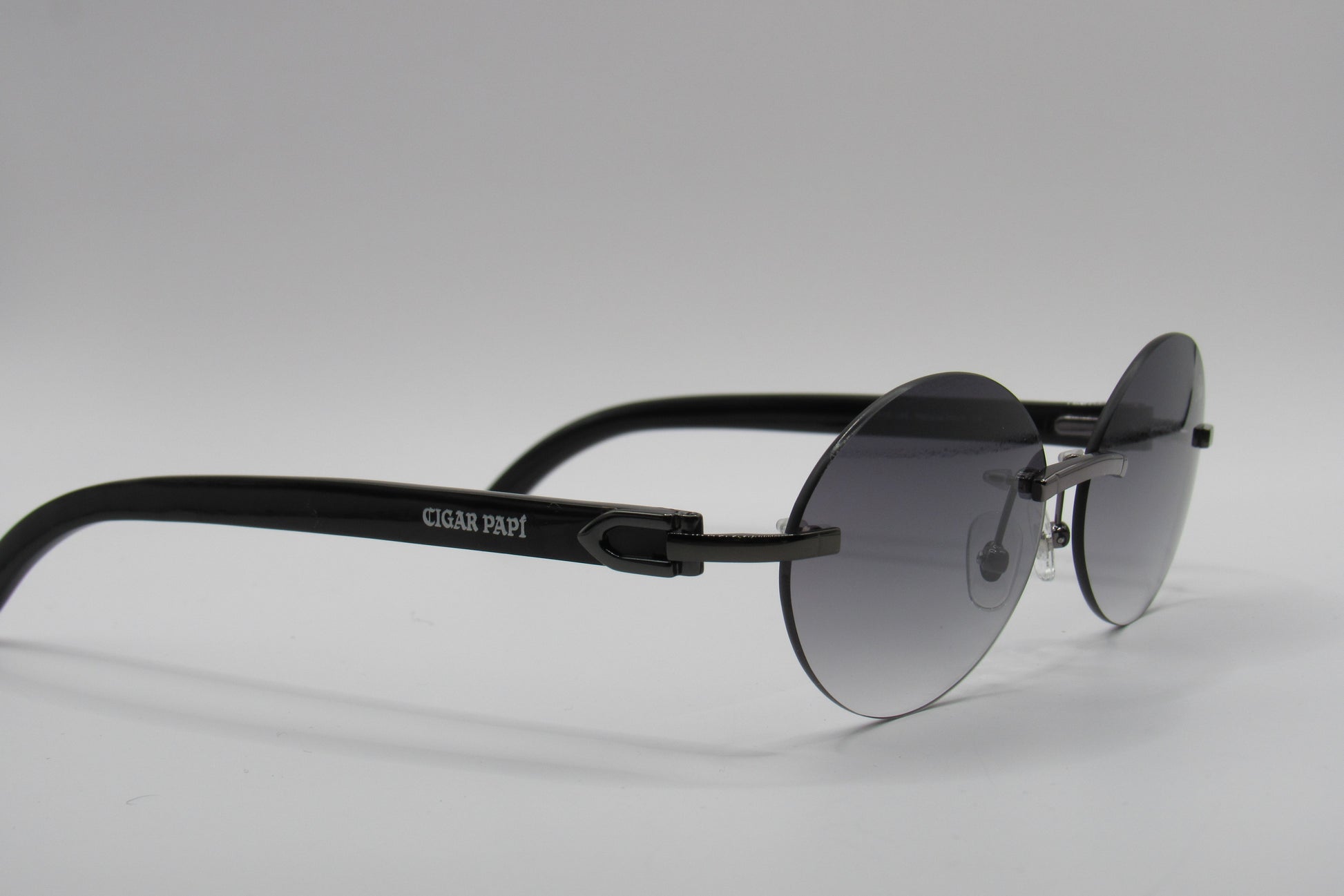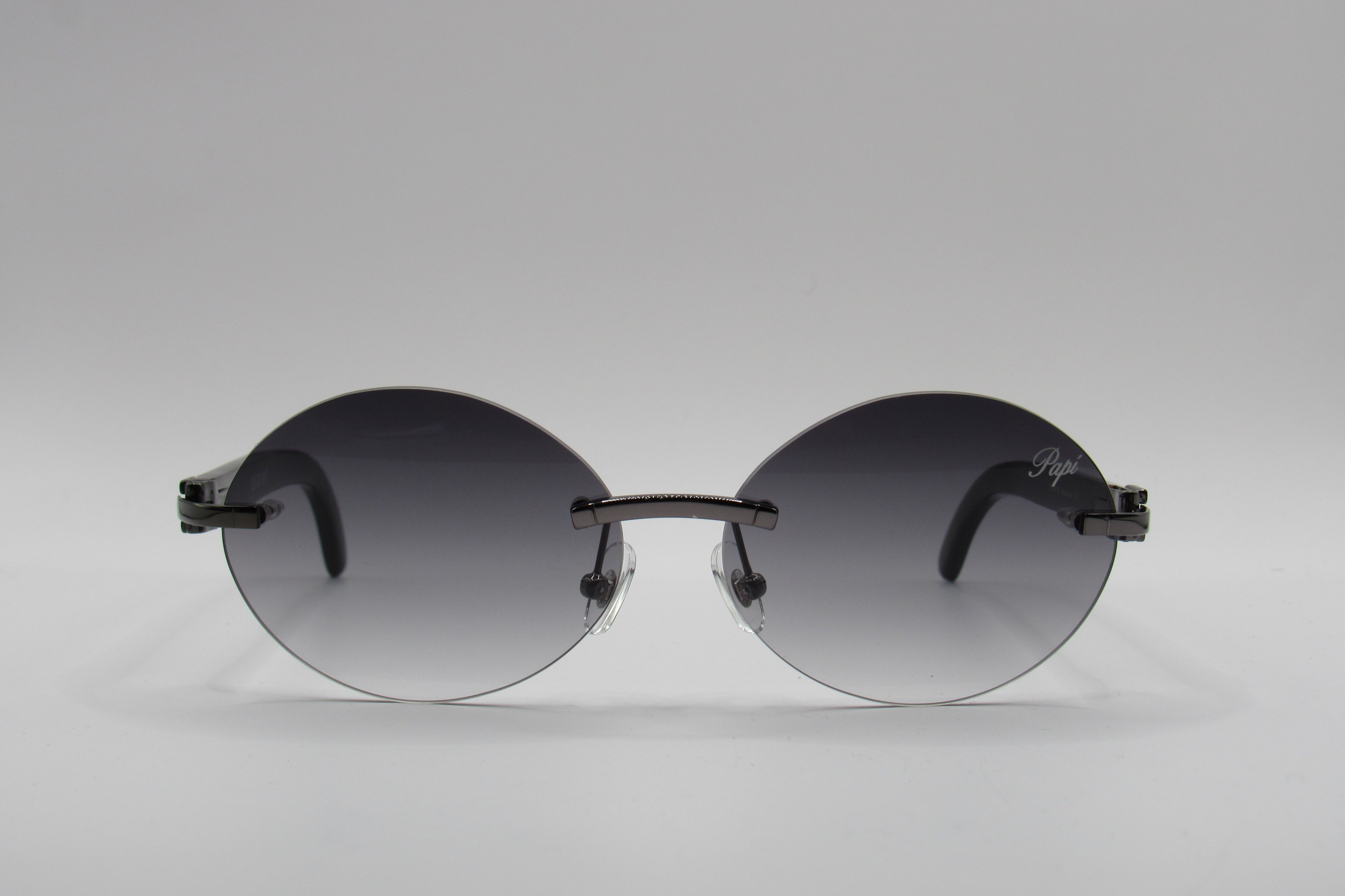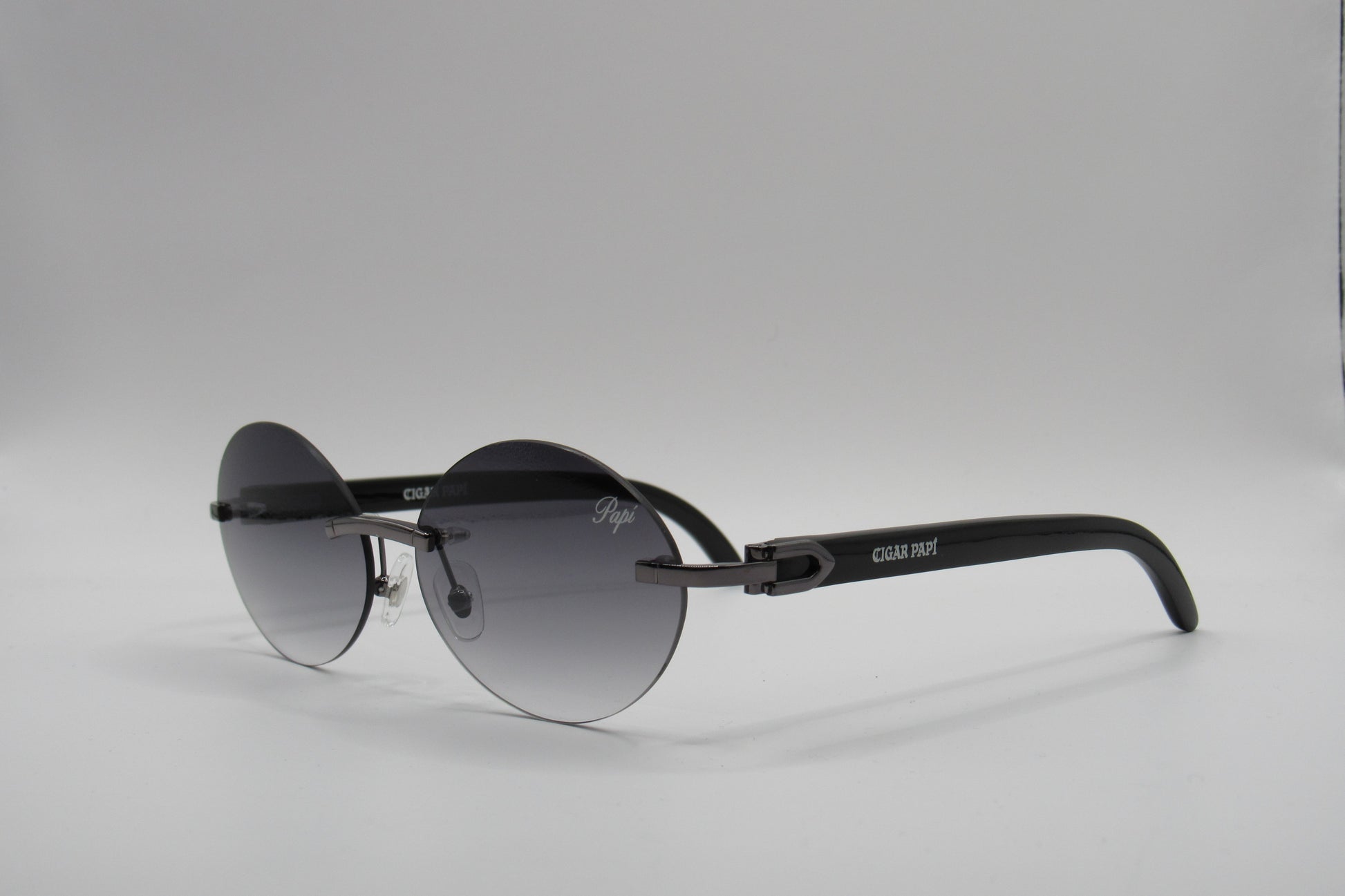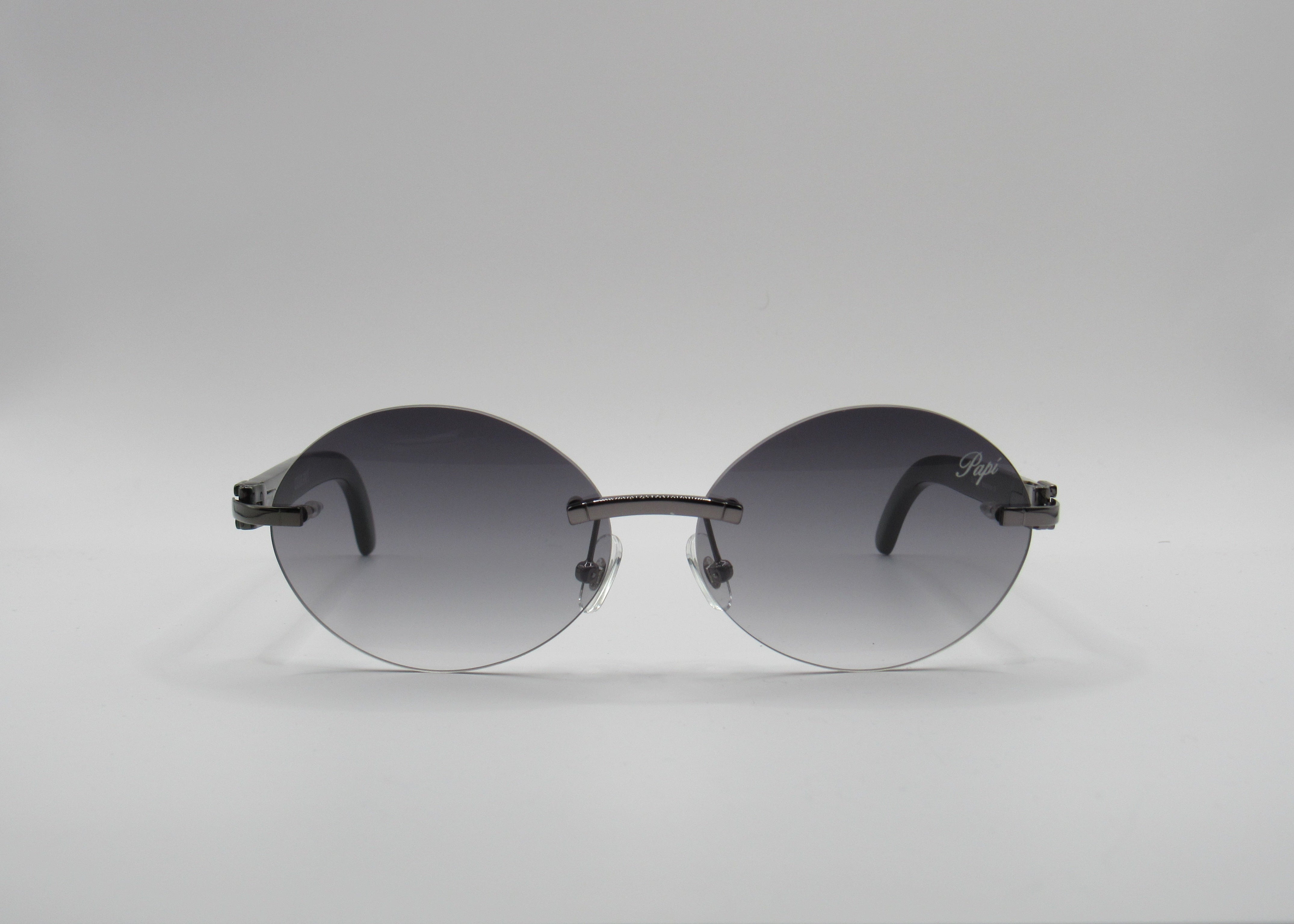 (Genuine Horn / Rimless Round / Gunmetal Hardware)