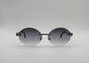 The silhouette is rimless and round — minimal architecture supported by precision gunmetal hardware. Balanced. Weightless. Intentional.
